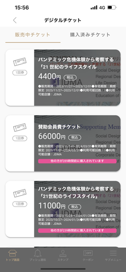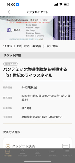 ・お支払いは、JDMA公式アプリのデジタルチッケトを利用すると手数料はかからず便利です。クレジット決済、Apple Payが利用できます。公式アプリQRコードは当ページに表示しております。なお、書籍等はデジタルチケットのみとさせていただきます。