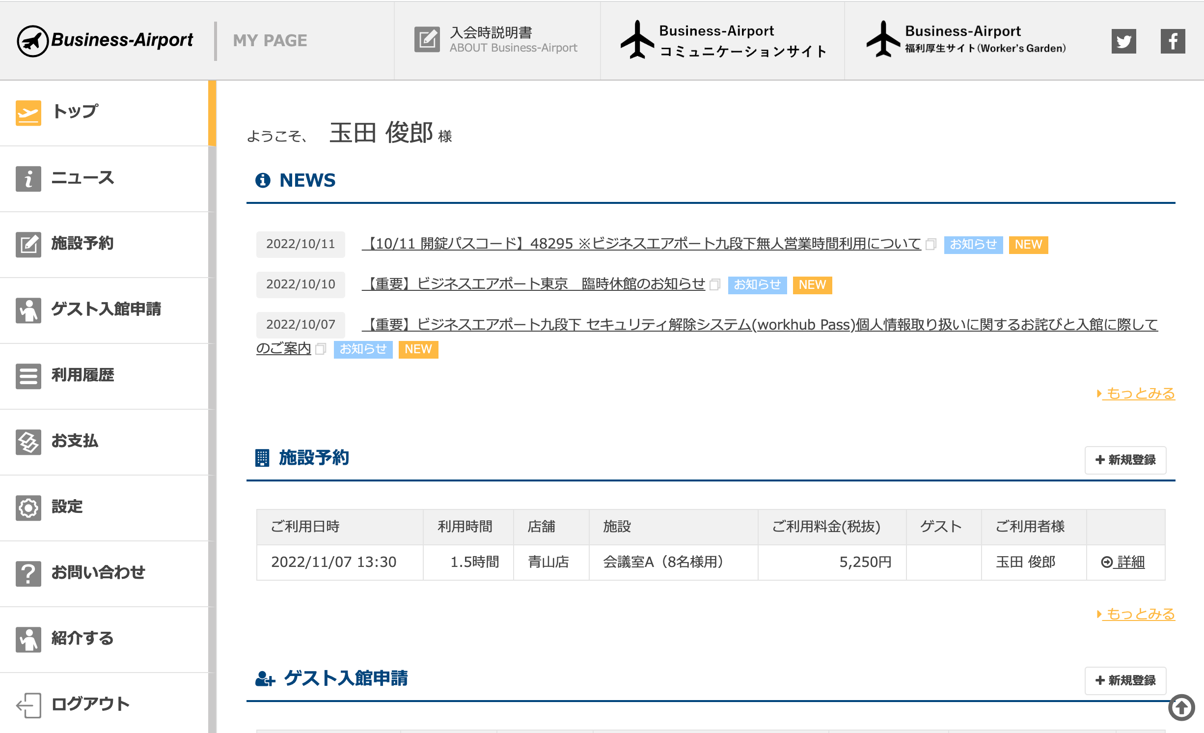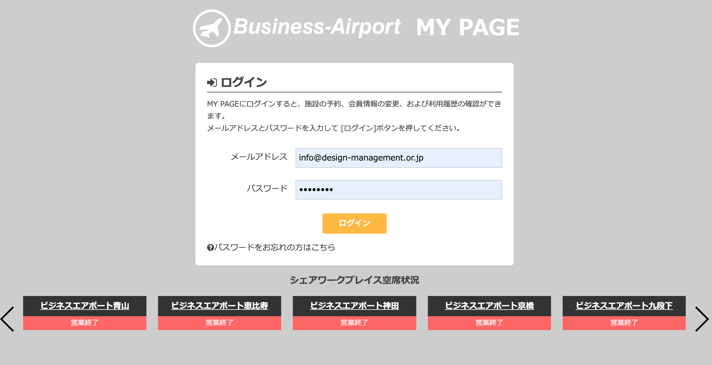 ■上記ビジネスエアポートのマイページURLに入って下さい