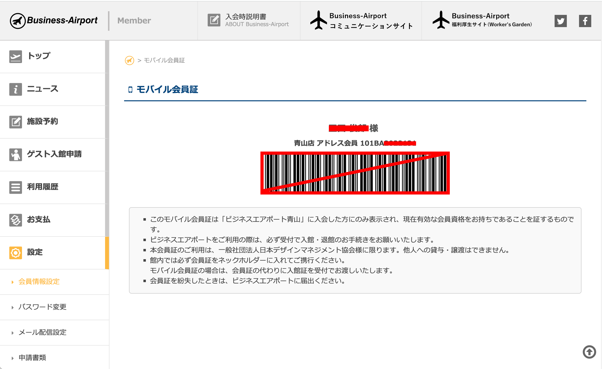 ■これをスプライン青山東急をはじめ、各ビジネスエアポートの受付で登録してご利用下さい